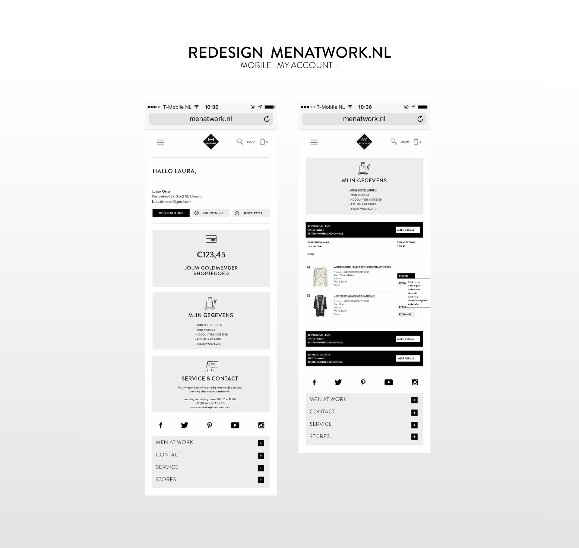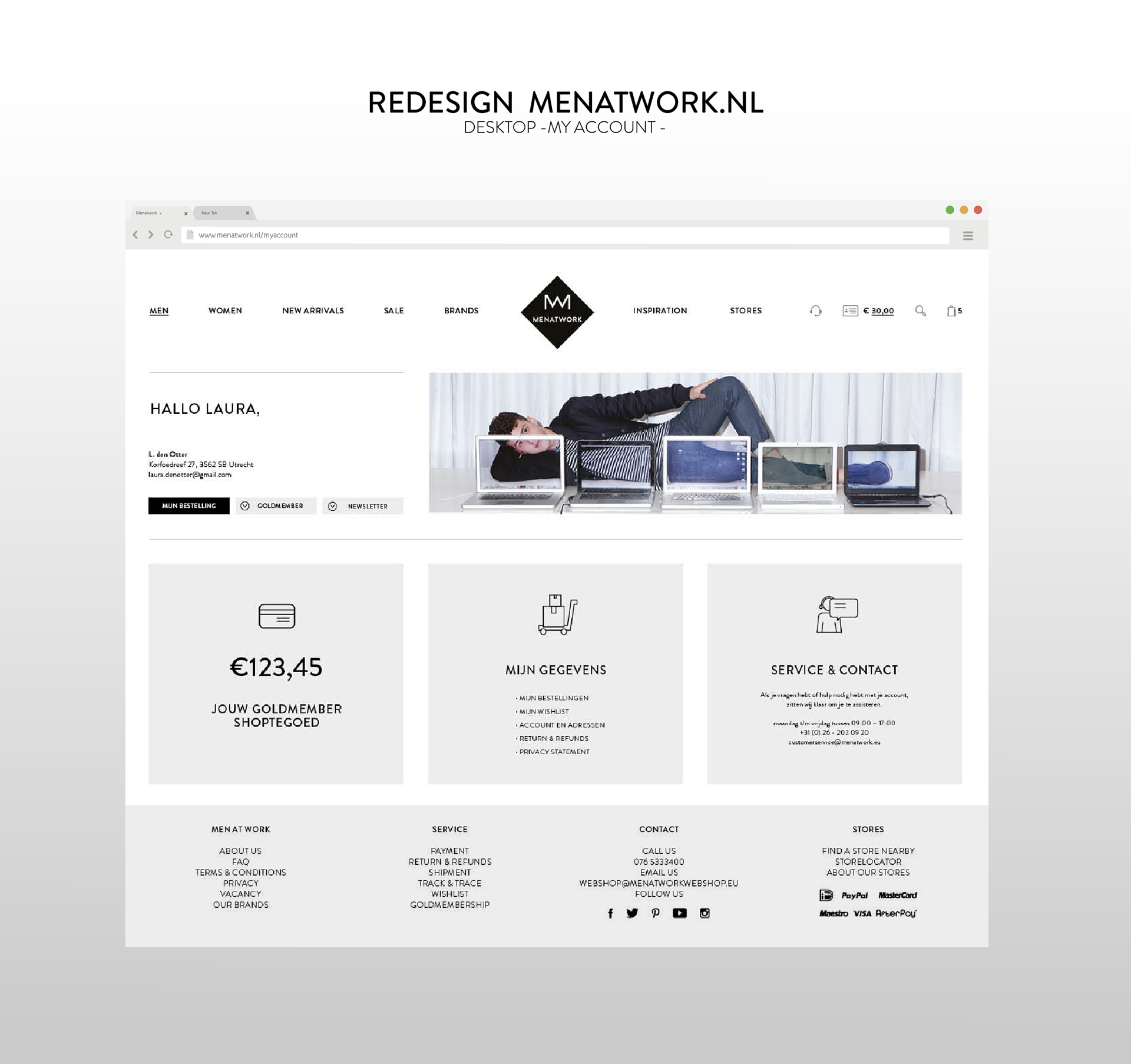 For Men At Work - online redesign - this page was one of the hardest pages - my account - how to make this page clean but informative, and getting rid of all the clutter.